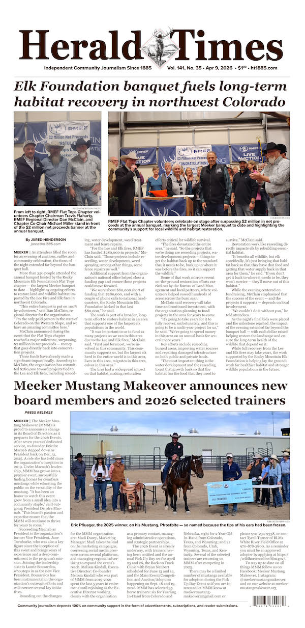 MEEKER | The Eastern Rio Blanco County Health Service District’s Pioneers Medical Center Board held its regular March meeting last week, with all board members present. The meeting began with a finance session at 9:30 a.m., where board Secretary/Treasurer Sherri Halandras raised questions about how board members were being classified[Read More…]