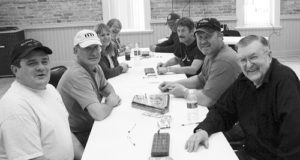 Twenty-one people participated in the 4th annual Meeker Benefit Cribbage tournament held last Sunday in Mountain Valley Bank’s community room. After everyone played five games, the top eight point-earners including (front to back) Clint Shults and B.I. Johnson, Cliff Chapin and Kelly Sheridan, Anna Todd and Steve Harman and Donna Bloedel and Craig Thiessen, advanced to the championship round. Harman beat Shults for the title and Donna Bloedel beat Cliff Chapin in the consolation championship game. The tournament raised more than $350 for the James Sizemore Memorial fund, which benefits the Rio Blanco County Search and Rescue.