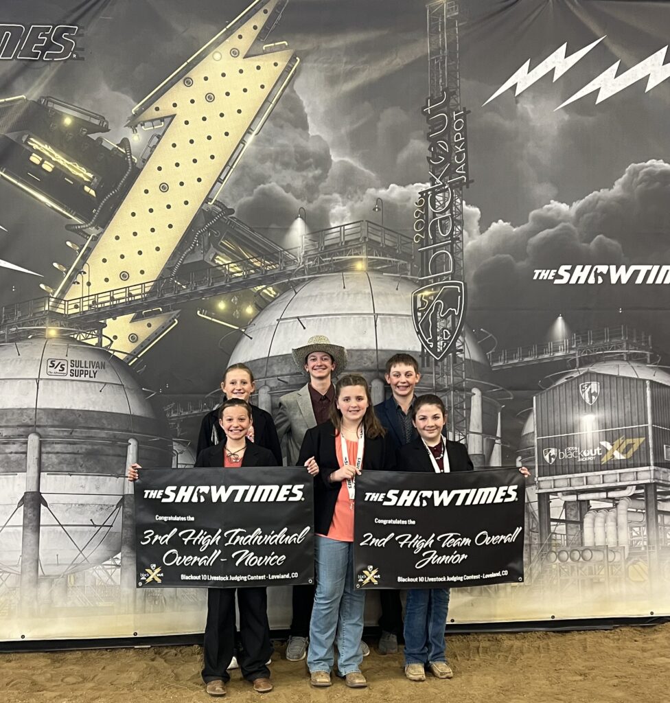MEEKER | The Meeker Livestock Judging team traveled to Loveland this past weekend to compete in The Showtimes Blackout 10 Livestock Judging Contest. We had to split into two junior teams. One team consisted of Brodee Kilduff, Annabeth Moody, Milo Brennan, and Copen Smith. Klayton Carroll was teamed up with Western Rio Blanco Judging team member, Arabella Black for the second team. Then Whitney Carroll competed individually in the novice division. There were a total of 66 juniors making a total of 23 teams.