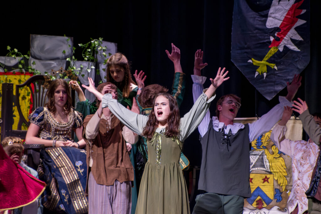 Natalie Bayles (center) played Princess Winnifred the Woebegone, AKA “Fred”, in the Meeker High School drama production of “Once Upon a Mattress” last weekend. CAITLIN WALKER/ERBM PHOTO