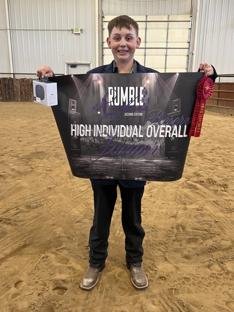 Milo Brennan winning Reserve Champion High Individual Junior at the “Rumble in the Rockies” Livestock Judging Contest.