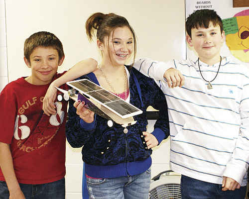 Rangely Middle School seventh grade science students held a competition where they designed and built solar cars. Each group was given the same materials: a photovoltaic solar panel, balsa wood, motor, gears, wheels, tires and axles. Students then designed and constructed their cars, using concepts about friction, aerodynamics, gear ratios. Races were held to determine the winners using stop watches and distance. Students collaborated as teams to use critical thinking skills and integrate math concepts, as well as learning about the global implications of solar energy.
