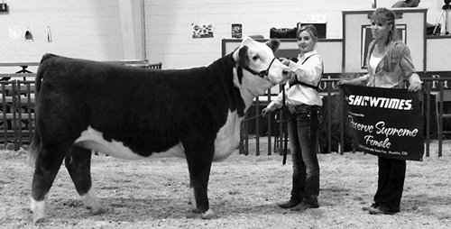 Meeker’s Kolbi Franklin is seen here with her Colorado State Fair champion Hereford heifer, Sadie. Sadie was champion heifer of All Other Breeds and was chosen as reserve supreme heifer at the State Fair in Pueblo.