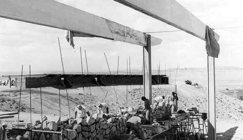 “Our bishop then was Robert Steele, and he had a bulldozer,” Berrett says. “He also had a monster of a dump truck that would haul around 40 tons of rock. It didn’t take us too long to fill it. He’d doze us a trail for trucks to go in and get some rocks and bring them back out.”
